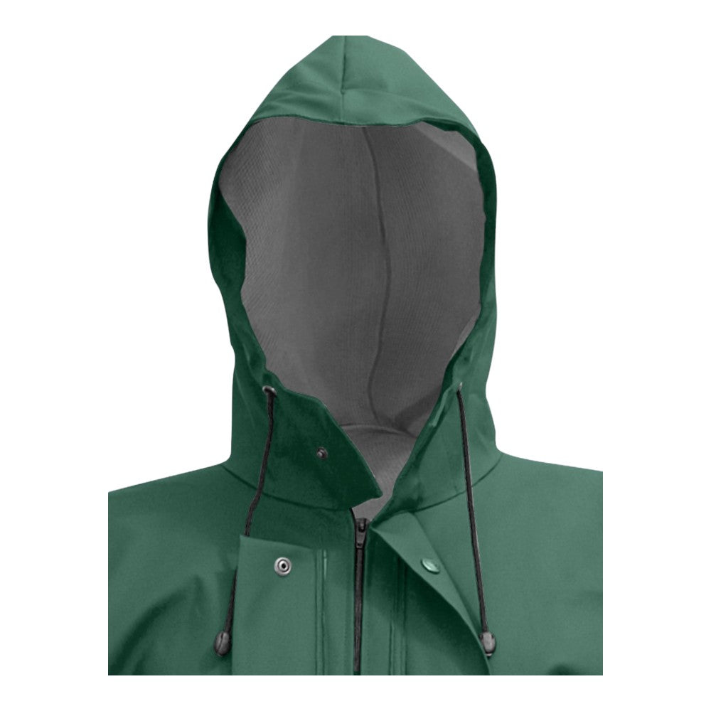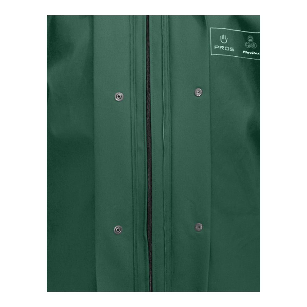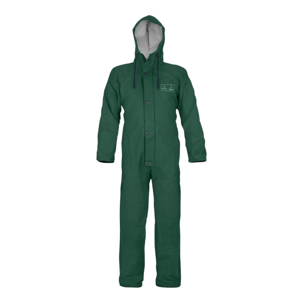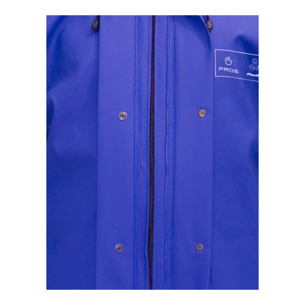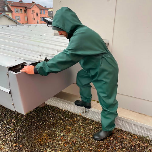 Cette combinaison repose sur l'ingénierie du tissu Plavitex Classic® (350 g/m²). L'enduction PVC de 0,48 mm sur support polyester garantit une imperméabilité souveraine tout en restant souple pour accompagner chaque mouvement brusque. La capuche ergonomique à col tempête et la double protection centrale verrouillée par boutons-pression créent une cellule de protection étanche. C'est l'équipement de sécurité indispensable pour ceux qui exigent une durabilité sans faille sur le terrain.