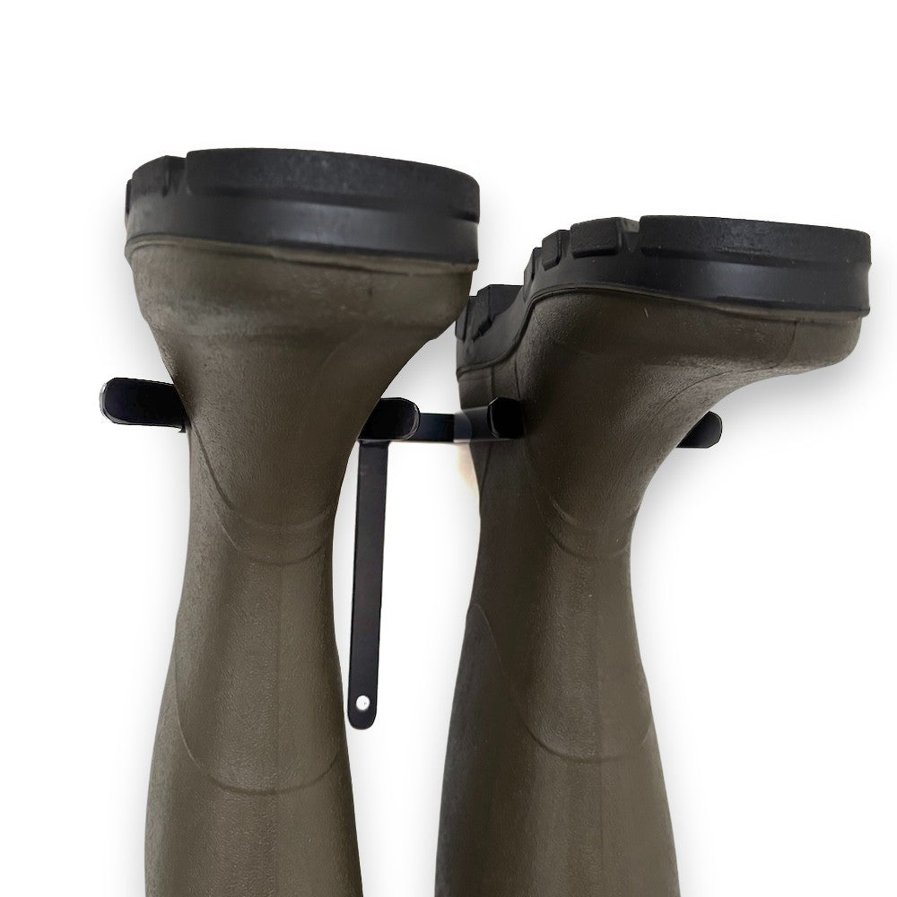 • Deux cintres ajustables et ergonomiques : Ces cintres sont conçus pour épouser la forme naturelle de la partie supérieure de vos bottes ou waders. Ils empêchent la déformation, les plis et les marques de tension qui peuvent fragiliser les matériaux.