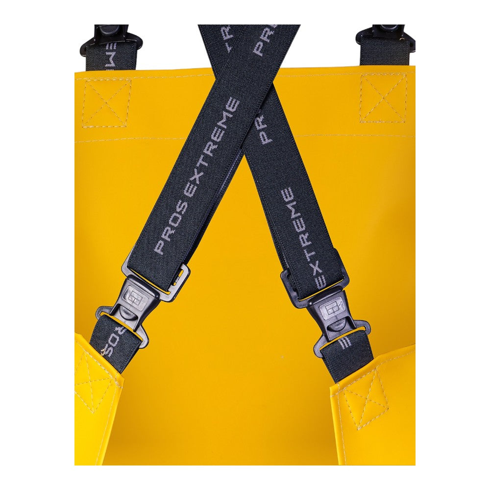 Ce tablier a été spécialement pensé pour résister à l'épreuve du temps. Son tissu est un mélange de support Polyester et d'une double enduction de PVC qui le rend totalement imperméable. Cette double couche offre une protection maximale, non seulement contre l'eau et le froid, mais aussi contre l'usure due aux frottements et aux manipulations de matériel. La bavette de renfort frontale ajoute une couche de protection supplémentaire, protégeant le torse contre les coups ou les éclaboussures.