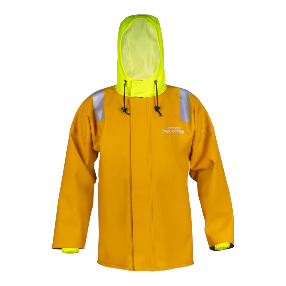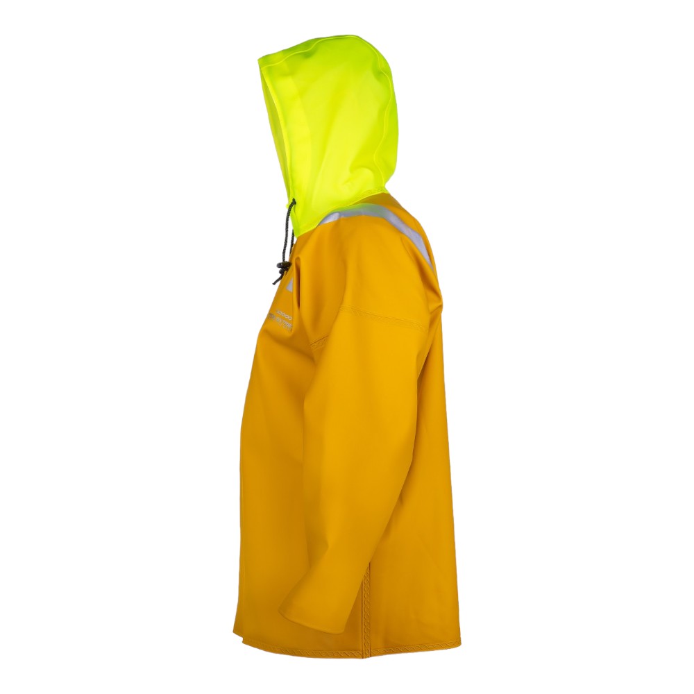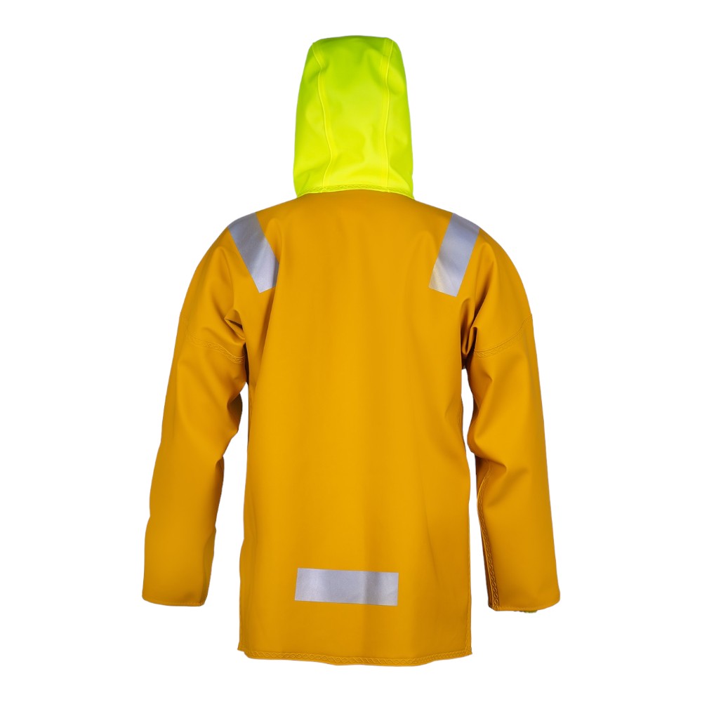 Le ciré jaune est un incontournable des côtes, et cette version moderne en reprend les codes tout en y ajoutant des fonctionnalités essentielles pour les marins et les passionnés de la mer. Conçu pour résister aux conditions les plus rudes, ce ciré combine l'esthétique classique avec une conception technique de pointe. Son coloris jaune impérial ne se contente pas d'être un clin d'œil à l'histoire maritime : il assure également une excellente visibilité, même par temps de brouillard ou de forte pluie.