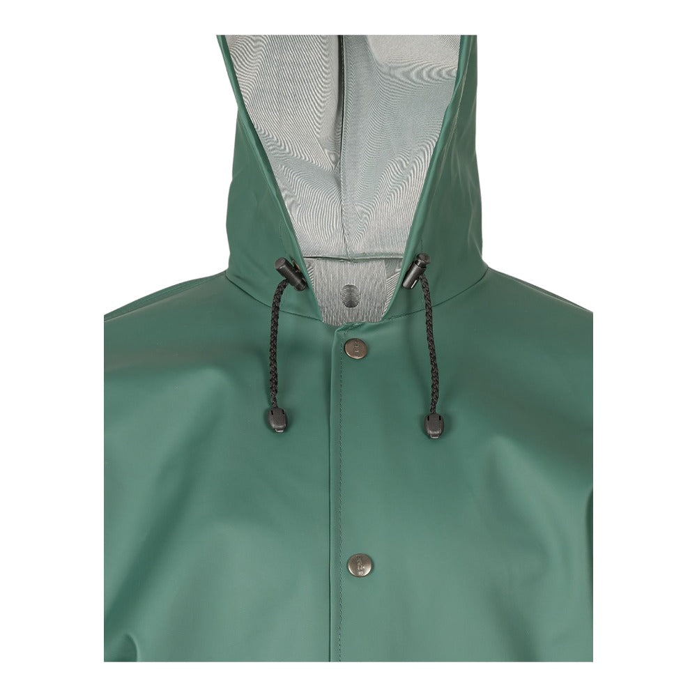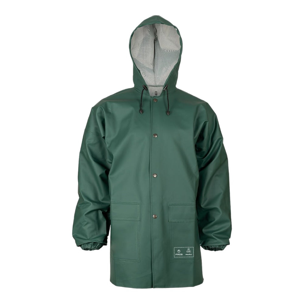 Cette veste utilise l'excellence du tissu Plavitex Classic® (350 g/m²). L'enduction PVC de 0,48 mm sur support polyester assure une étanchéité souveraine tout en conservant la souplesse nécessaire à la liberté de mouvement. Ses coutures soudées haute fréquence et ses poches sous rabat font de cet équipement un vêtement pro d'une fiabilité totale. C'est l'alliance parfaite entre sécurité, durabilité et confort de travail.